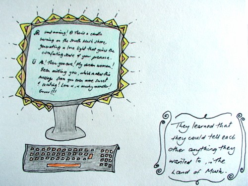 Monday at 9:00. Gone to Deb's cybercafe to check my email. Funny