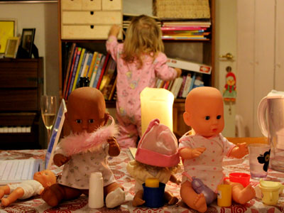 = “Se mig, far! Jordbærpigen er tilbage!”