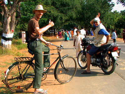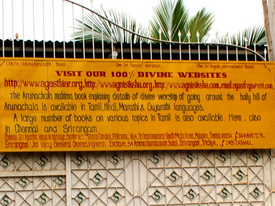 We meet Ramanadas at night, in front of a cyber café. Nice guy! When he hears that we have been bicycling around the Arunachala Mountain, he makes it clear to us that this will not do. We need to walk on our two feet. He offers to guide us, and to explain to us about the places that we pass on the way.