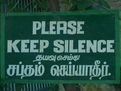 India, and probably in particular a temple city such as Tiruvannamalai, is full of sounds and music. Everywhere you hear loud or distant sounds of drums, flutes, singing, chanting, not to mention the roaring, beeping car traffic. But at many of the holy places absolute silence prevails. |