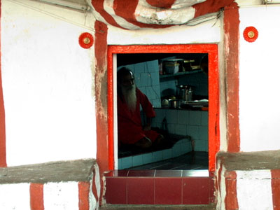 17:30 on December 24: Inside the Cave Shiva Temple a brahmin gives the blessings of Shiva. |