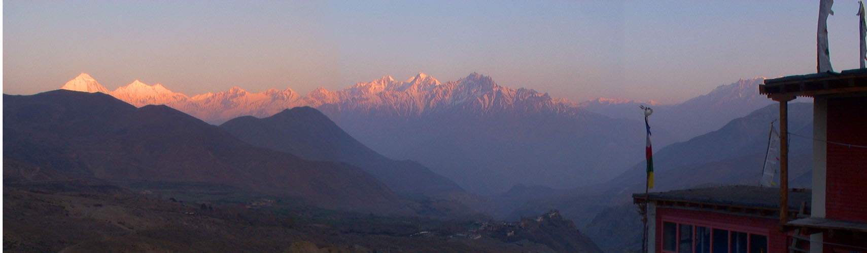 gigantic peaks of Dhanlagiri and Annapurna, rising almost seven kilometers above the