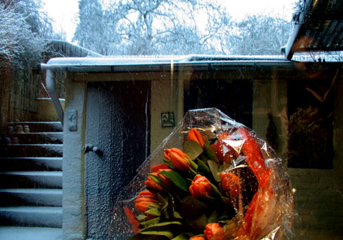 We find these beautiful flowers on the doorstep