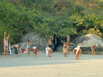 A group who are on their 10th day of isolation practising Vispassana on the beach. |